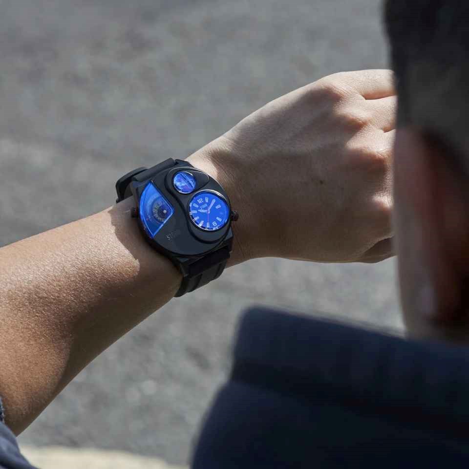 The Navitrek stands out with its 45mm rugged ion plated stainless steel construction and iconic STORM laser blue dial, complemented by a high-quality rubber strap. With luminous hour markers and hands that glow in the dark, you'll always be in command of time, day or night.