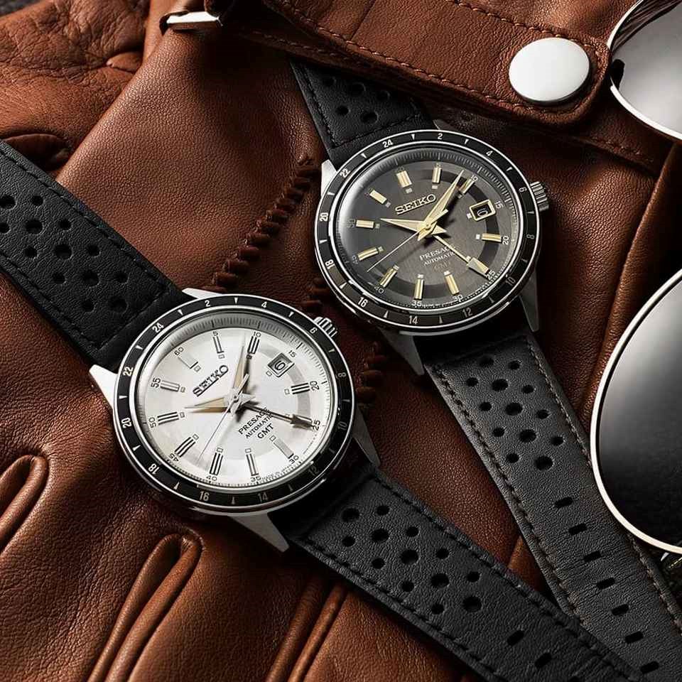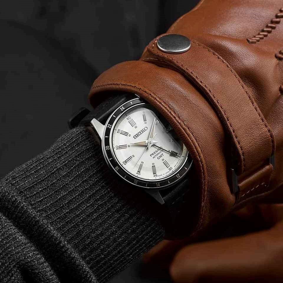 Seiko Presage SSK011J1 Style 60s GMT Black Leather Watch - W25543