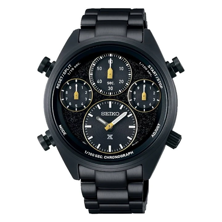 The 42mm case boasts a black dial, subdials and bracelet achieves visibility and legibility due to its separate indicators for time and chronograph functions and conveniently solar-powered; the watch charges from both natural and electric light. The hammer-shaped button allows for easier operability of the stopwatch function. This model is powered by the in-house built Solar chronograph calibre 8A50 that allows measurement to the nearest one-hundredth of a second. 100m water resistant.