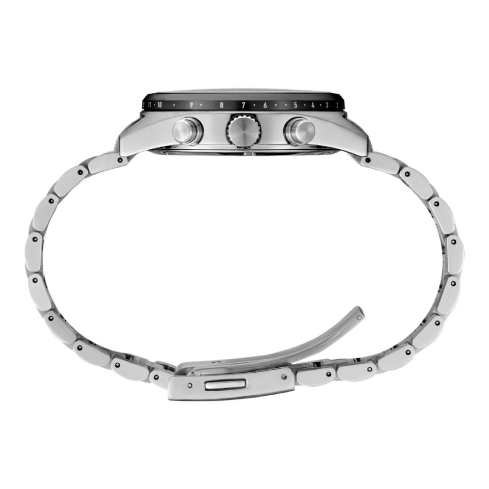 Under a dual-curved sapphire crystal glass is a dual-time display, high-speed time zone adjustment feature and a time transfer function. Around the perimeter of the black dial, this GPS Solar timepiece enhances the chronograph functionality with the addition of a chronograph scale on the inner bezel. Legibility of the stopwatch function is enhanced by designing the UTC time zone markings on the side of the bezel.
