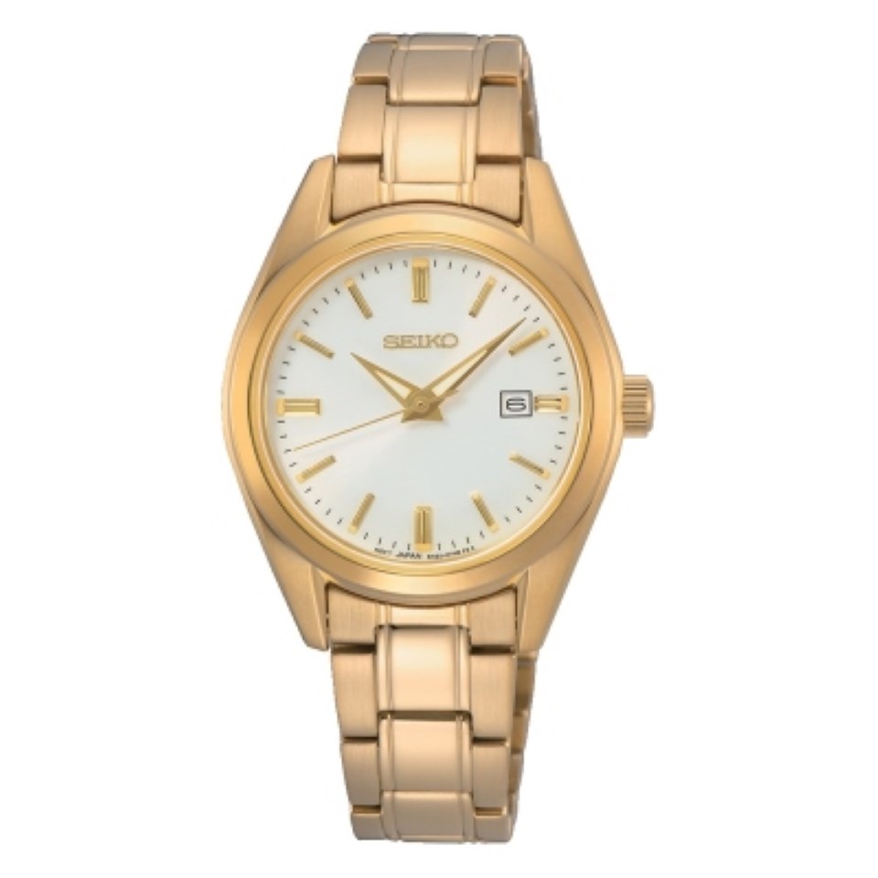 Seiko SUR632P1 Gold Plated White Dial Bracelet Watch - W7872