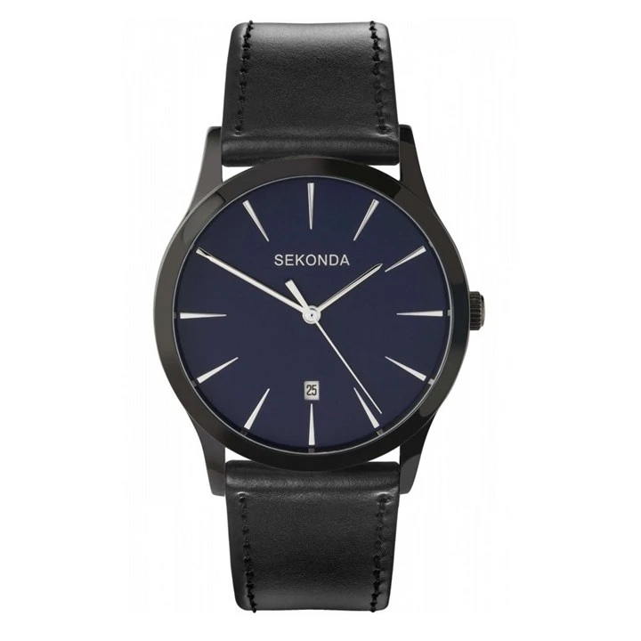 Sekonda 3536 - with the perfect colour combination, this men's Sekonda watch features a black IP steel backed case, a matching black leather strap, date window and a complimenting midnight blue dial.