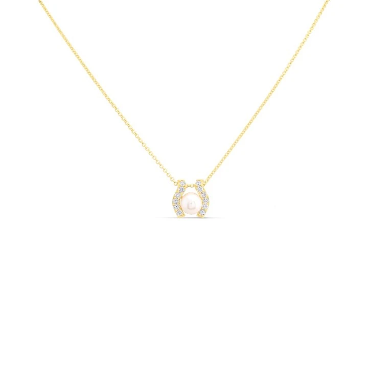 Sif Jakobs Gold Plated Silver Freshwater Pearl CZ Ponza Necklace - J02144