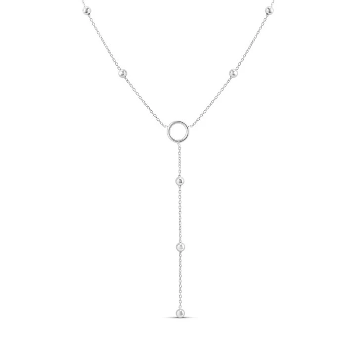 Silver Ball Station Lariat Necklace - F9519