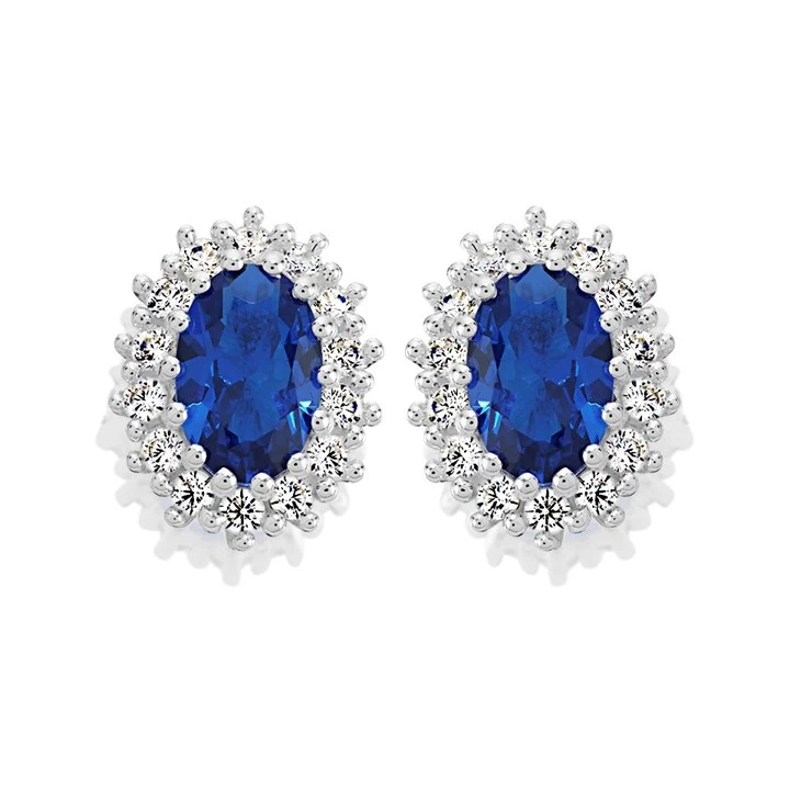 Silver Blue Cubic Zirconia Cluster Stud Earrings - 9mm - F04158