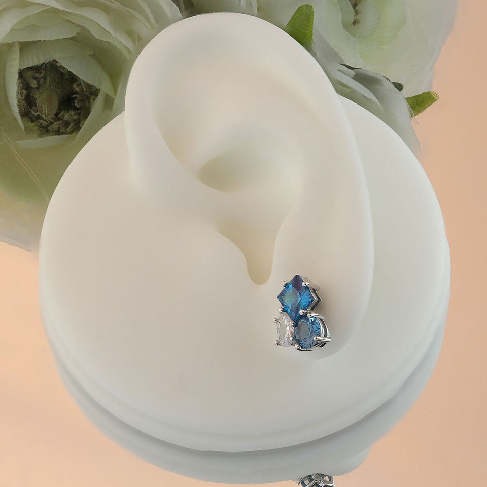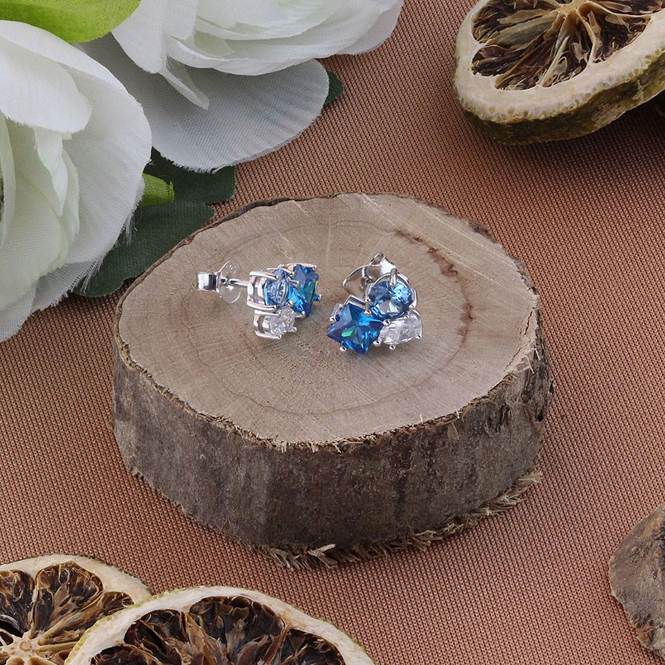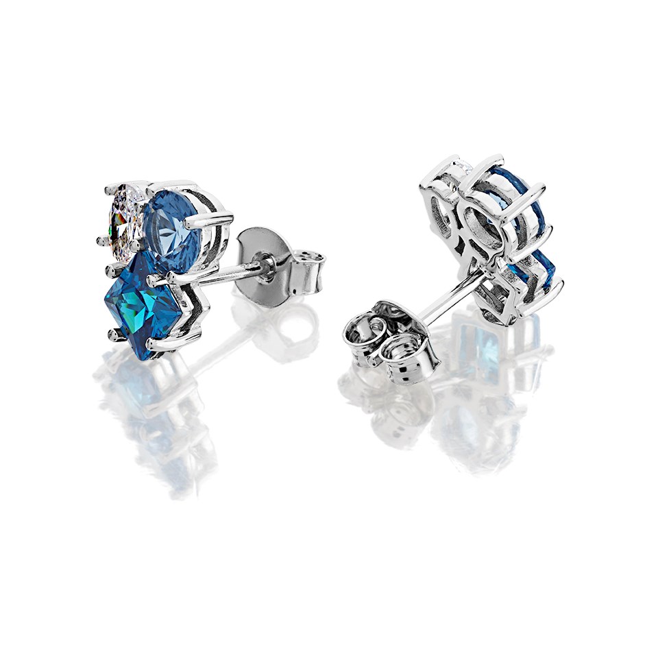 Silver Blue Cubic Zirconia Stud Earrings - F04159