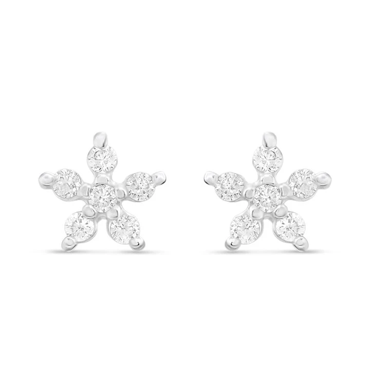 Silver CZ Flower Stud Earrings - F04213