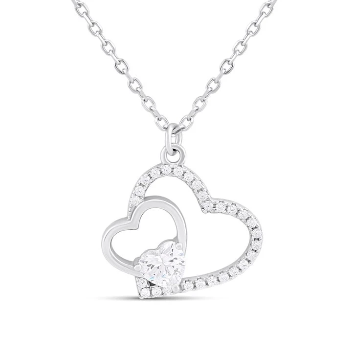 Silver CZ Heart Trio Necklace - F35169