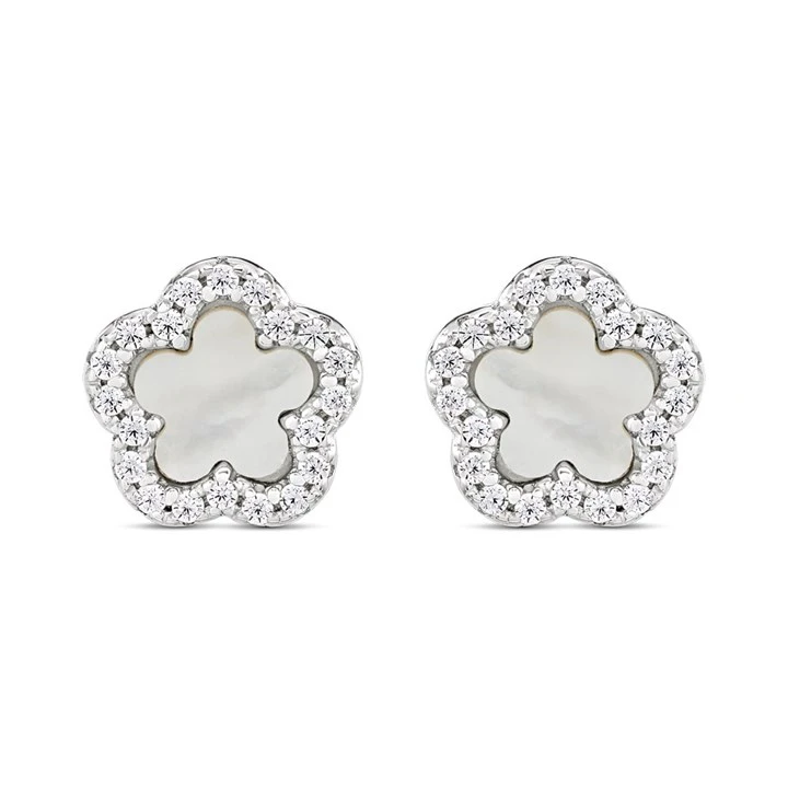 Silver C.Z. Mother Of Pearl Flower Stud Earrings - F04203