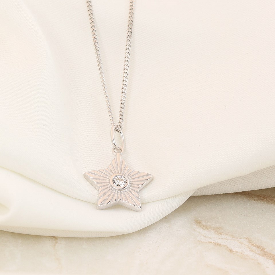 Silver CZ Star Necklace - F34115