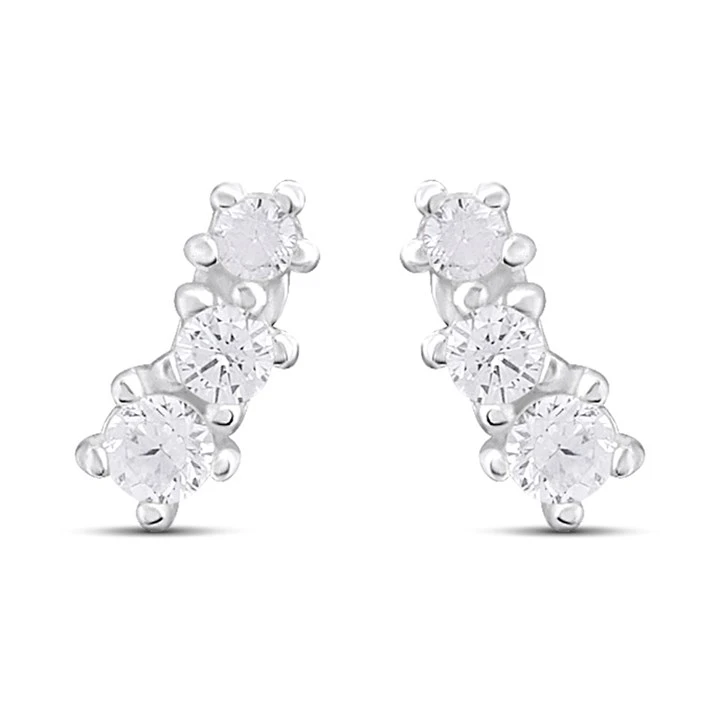 Silver CZ Three Stone Mini Climber Stud Earrings - F04212