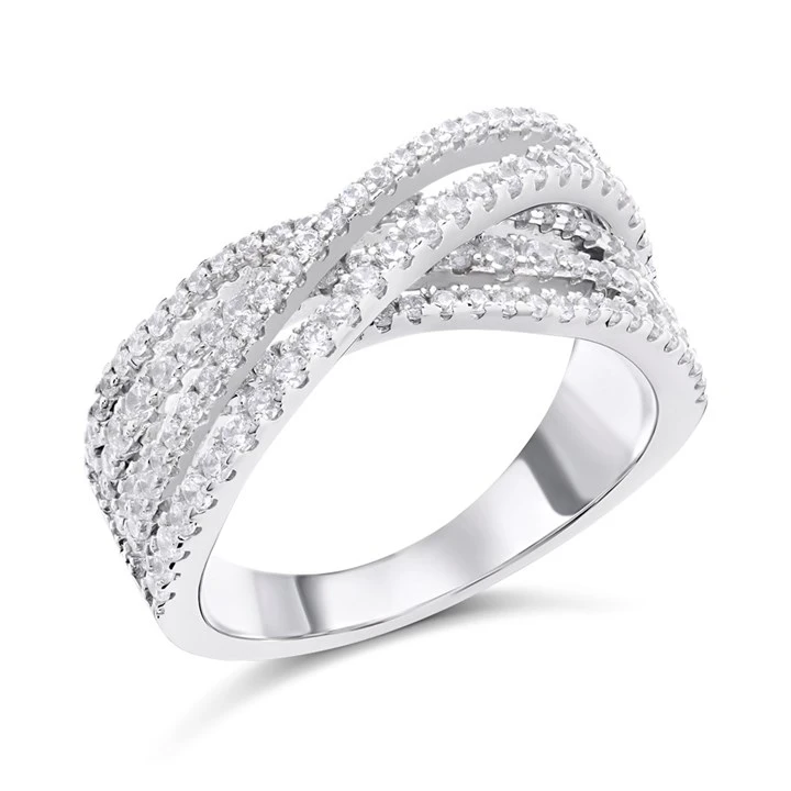 Silver Cubic Zirconia Crossover Ring - F6052