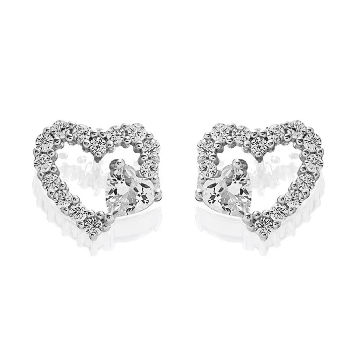 Silver Cubic Zirconia Double Heart Stud Earrings - 10mm - F04147