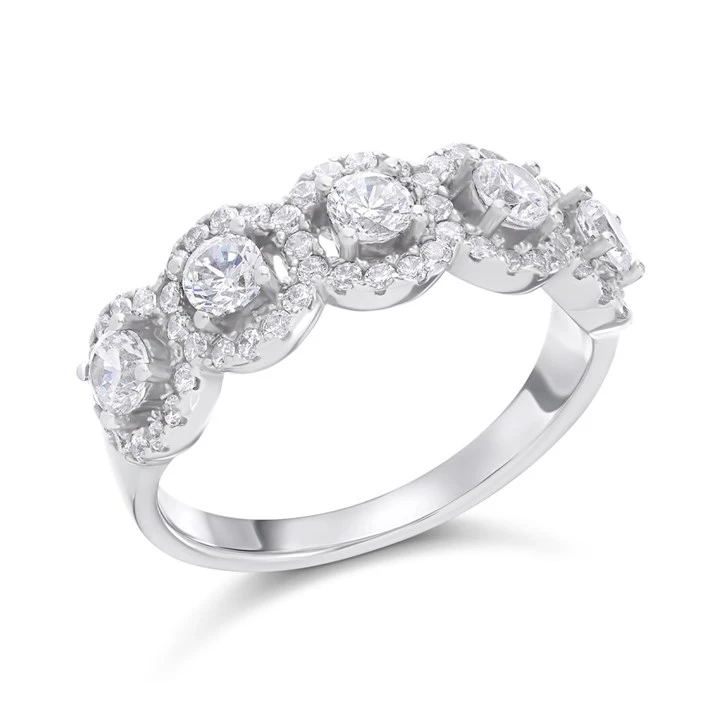 Silver Cubic Zirconia Five Halo Ring - F6051