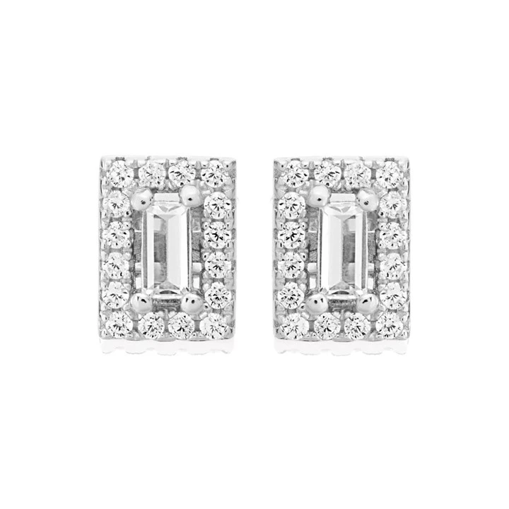Silver Cubic Zirconia Halo Stud Earrings - 8mm - F04140