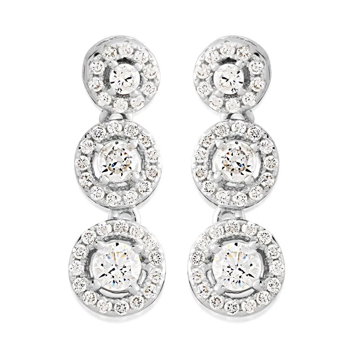 Silver Cubic Zirconia Halo Trilogy Drop Earrings - 19mm drop - F1226