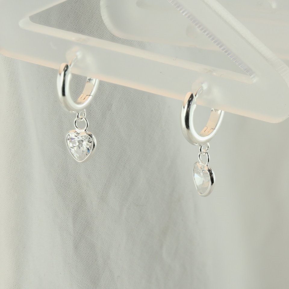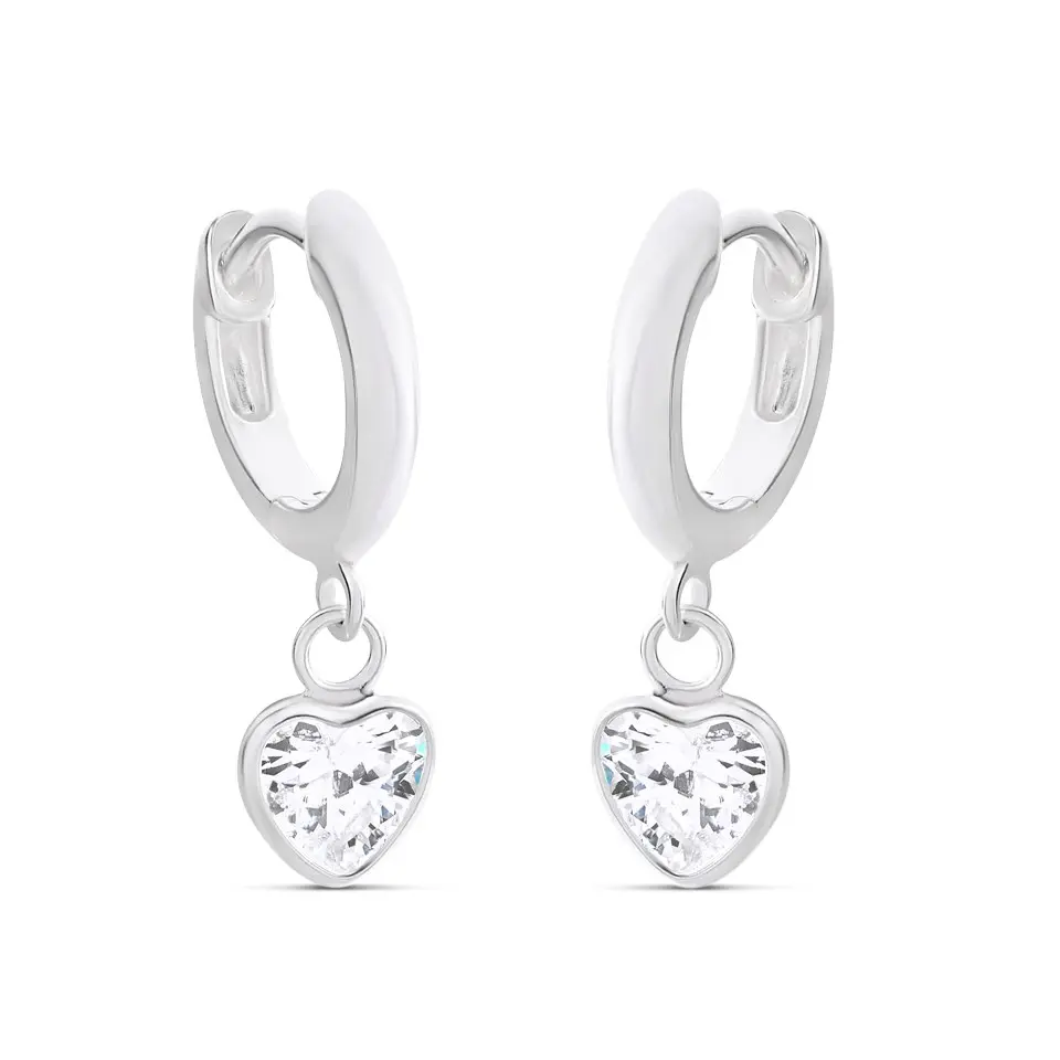 Silver Cubic Zirconia Heart Dropper Huggie Earrings - 11mm - F13133