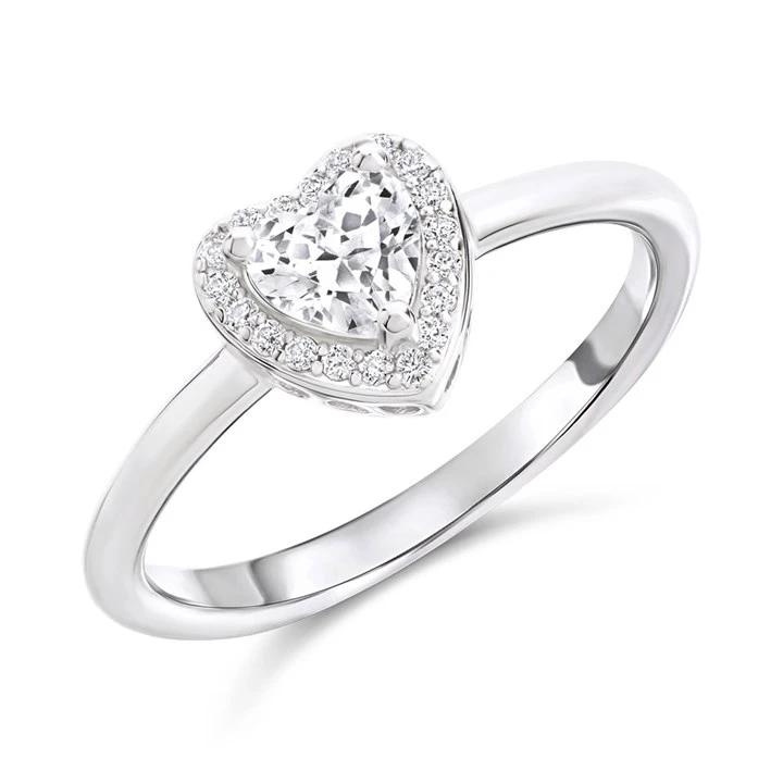 Silver Cubic Zirconia Heart Halo Ring - F6095