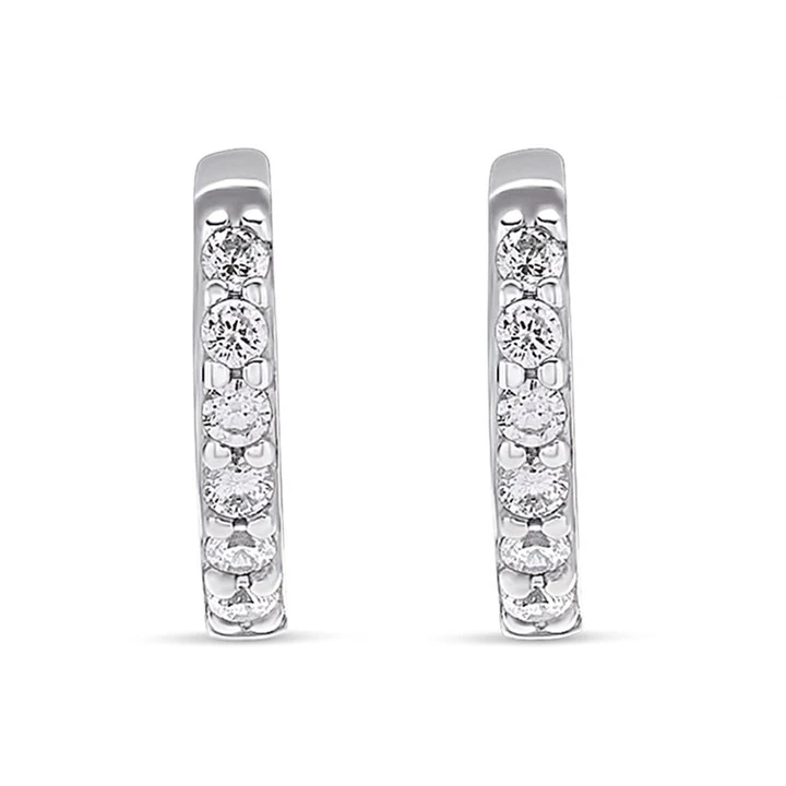 Silver Cubic Zirconia Huggie Hoop Earrings - 10mm - F1372