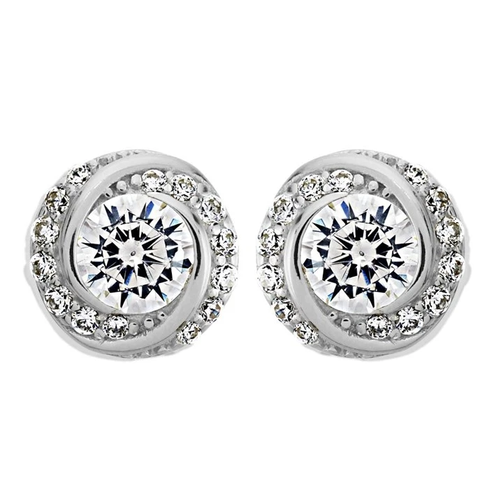 Silver Cubic Zirconia Knot Stud Earrings - 8mm - F04154