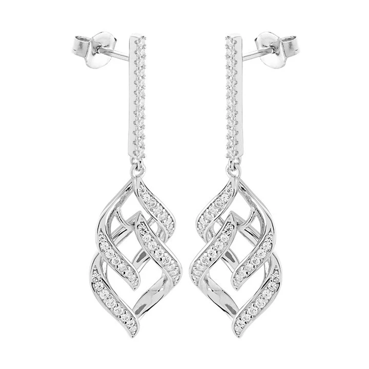 Silver Cubic Zirconia Link Drop Earrings - 40mm drop - F1218
