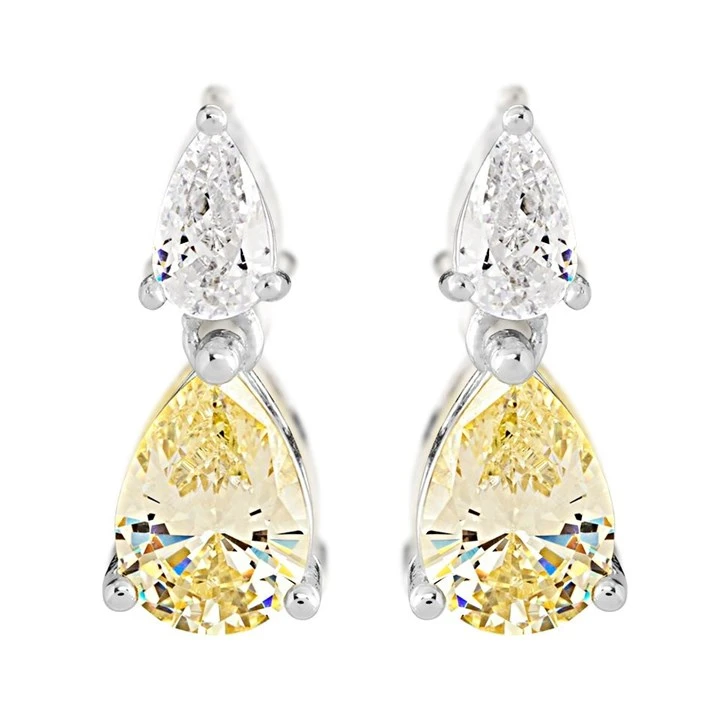 Silver Cubic Zirconia Pear Drop Earrings - 14mm drop - F1225