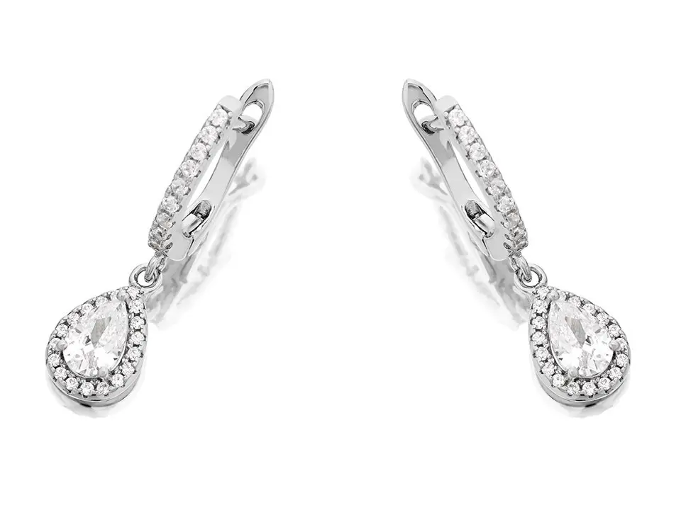 Silver Cubic Zirconia Pear Drop Hoop Earrings - 23mm drop - F1384