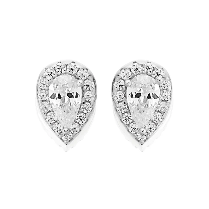 Silver Cubic Zirconia Pear Halo Stud Earrings - 8mm - F04141