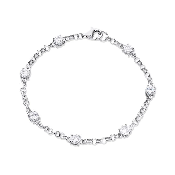 Silver Cubic Zirconia Station Bracelet - 7.5in - F14122