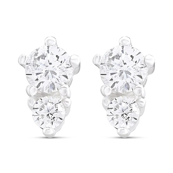Silver Cubic Zirconia Stud Earrings - F04195