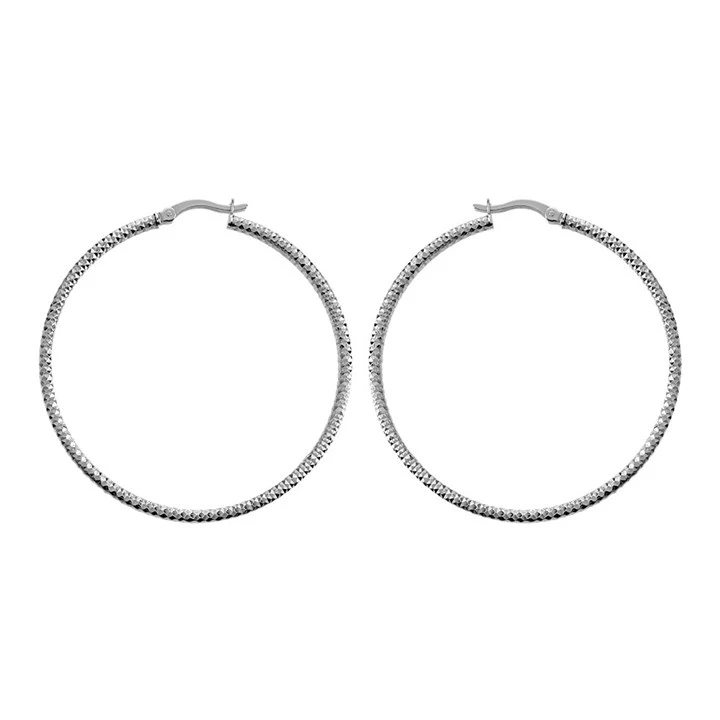 Silver Diamond Cut Hoop Earrings - 50mm - F13104
