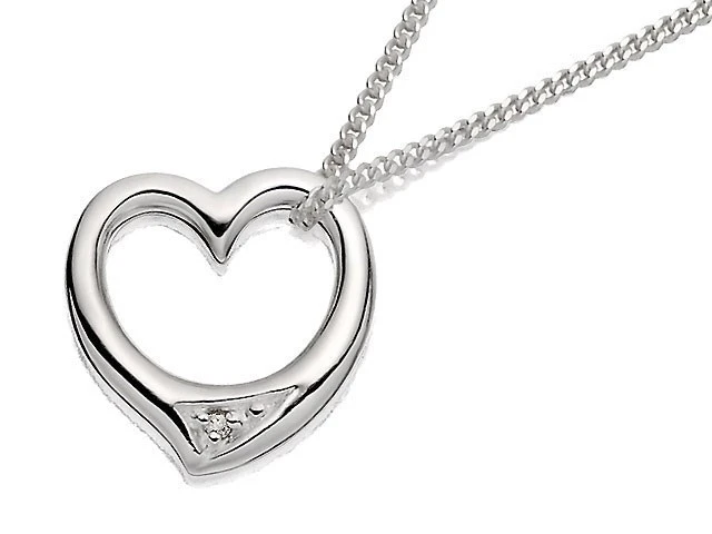 Silver Diamond Set Floating Heart Pendant And Chain - F3412