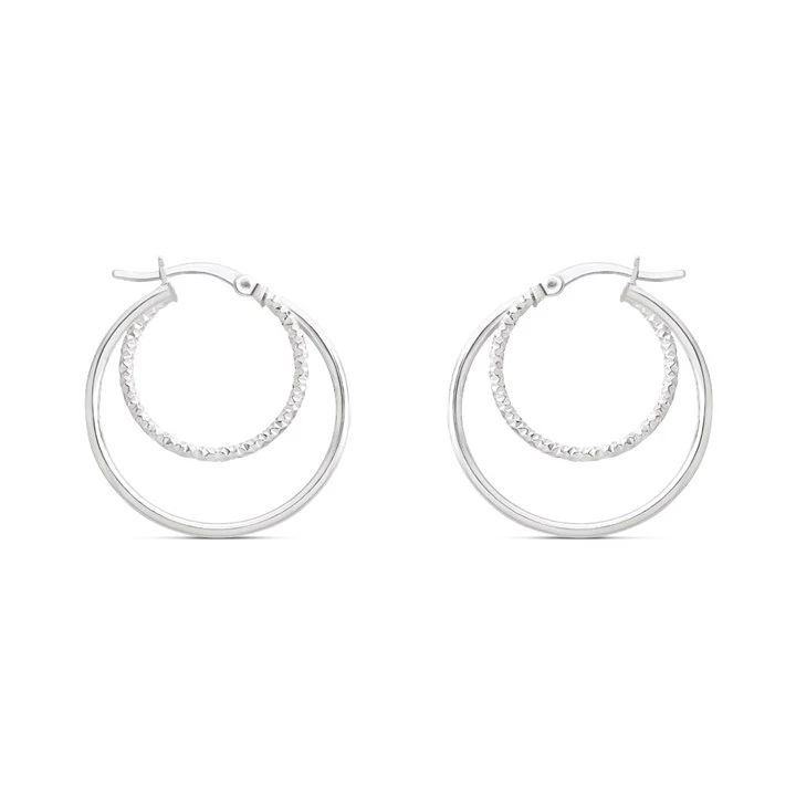 Silver Double Hoop Earrings - 25mm - F13144