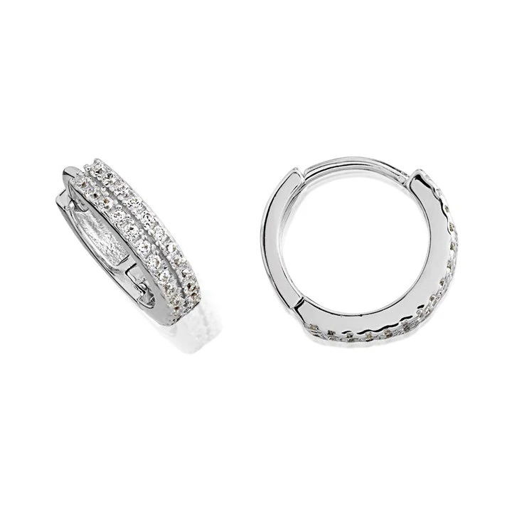 Silver Double Row Cubic Zirconia Hoop Earrings - 12mm - F13130