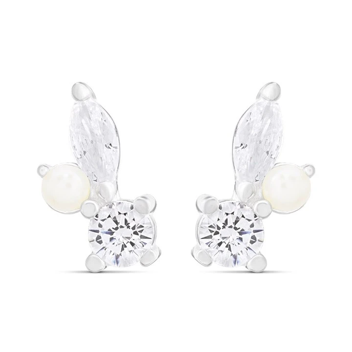 Silver Freshwater Pearl And Cubic Zirconia Stud Earrings - F04196