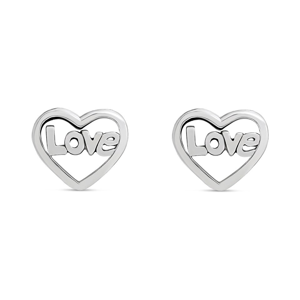 Silver Love Heart Open Stud Earrings -6mm - F01023