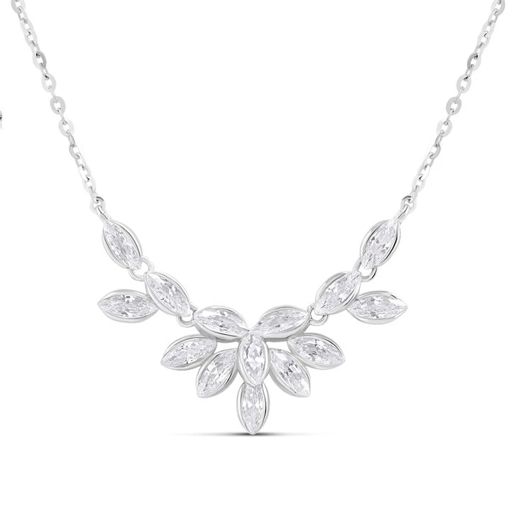 Silver Marquise CZ Cluster Necklet - F35166