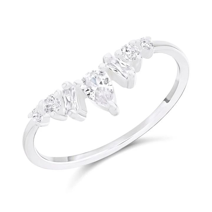 Silver Mixed Cut Cubic Zirconia Wishbone Ring - F6094