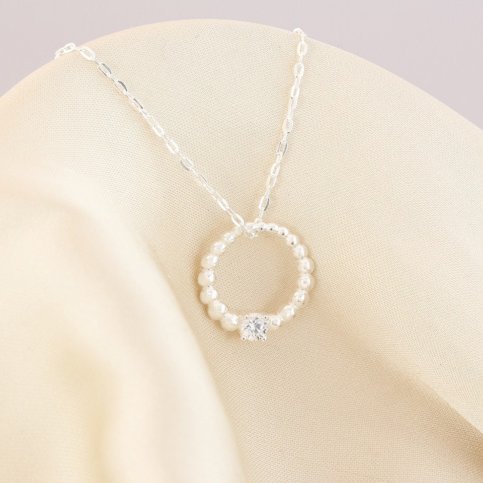 Silver Open Circle CZ Necklace - F33106