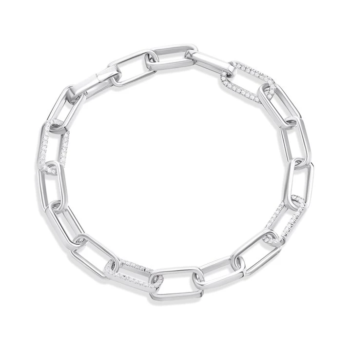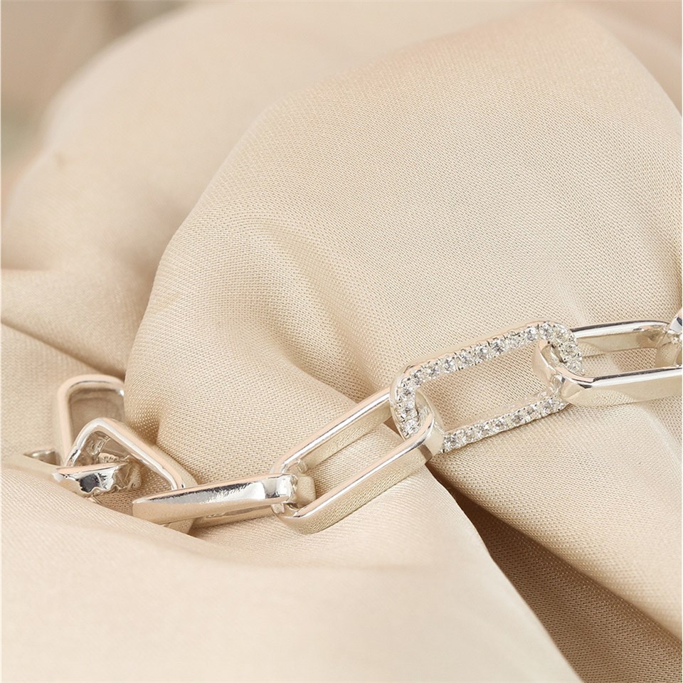 Silver Paper Link Stone Set Bracelet - F14198
