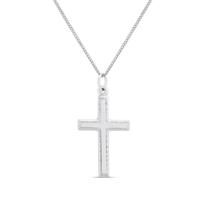 Silver Patterned Border Cross Pendant and Chain- 26mm - F3711