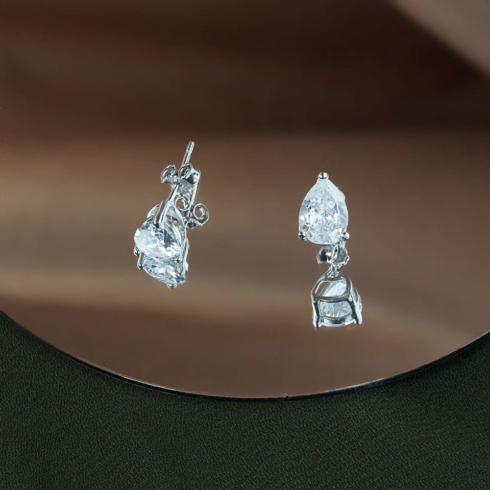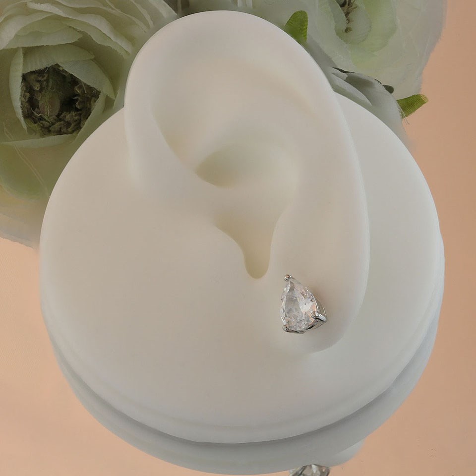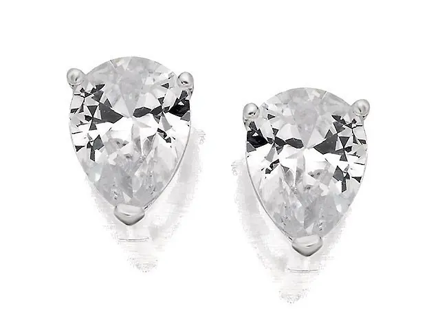Silver Pear Shaped Cubic Zirconia Earrings - 8mm - F0314