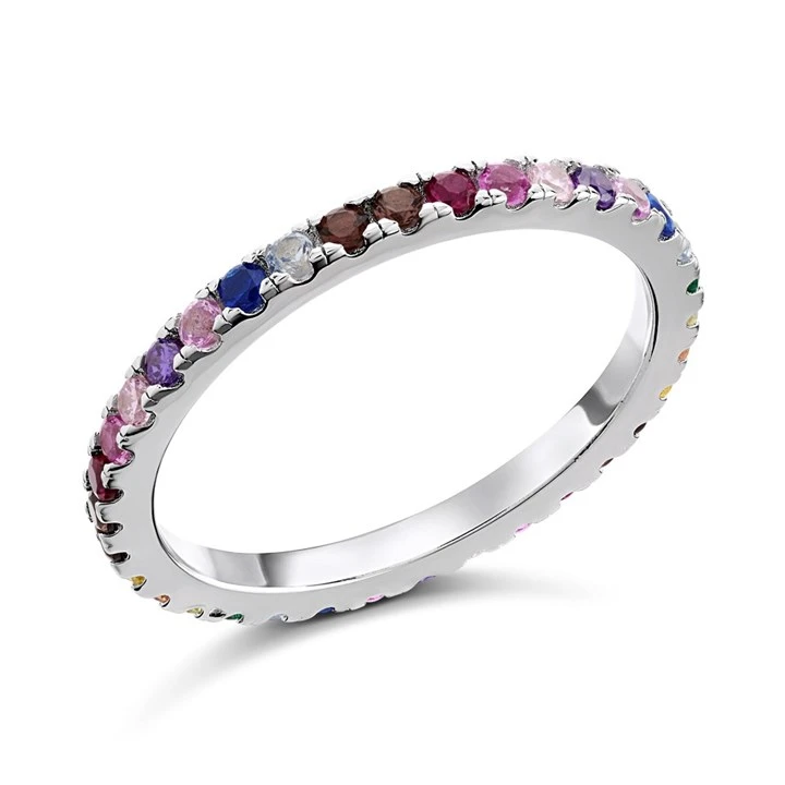 Silver Rainbow Cubic Zirconia Full Eternity Ring - F6081