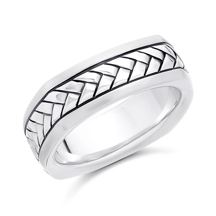 Silver Rhodium Plated Heavy Herringbone Ring - F4932