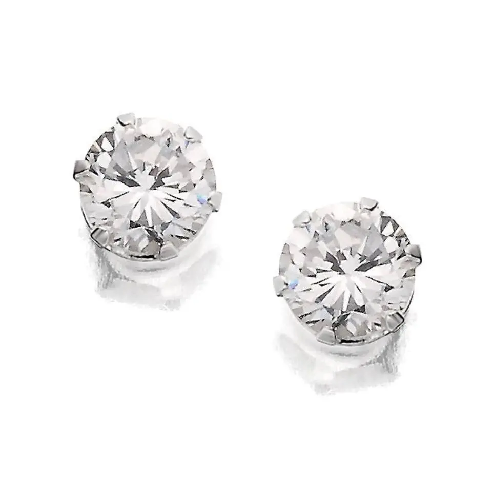 Silver Round Cubic Zirconia Earrings - 6mm - F0491
