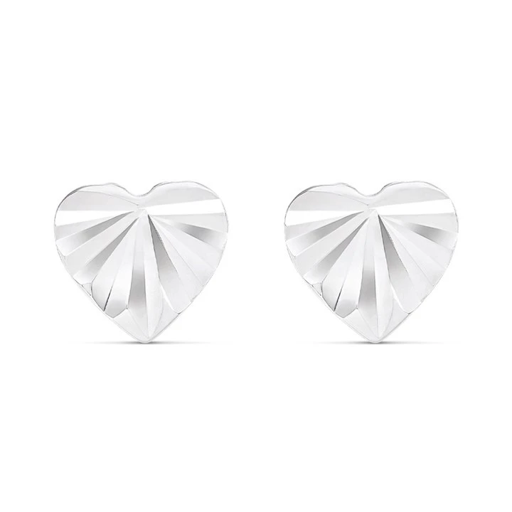 Silver Sparkle Cut Heart Stud Earrings - 6mm - F0241