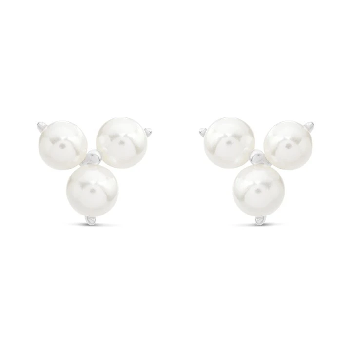 Silver Triple Simulated Pearl Stud Earrings - F04199