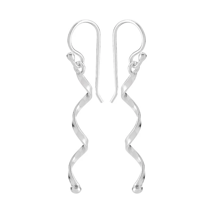 Silver Twist Hook Wire Earrings - 42mm drop - F05107