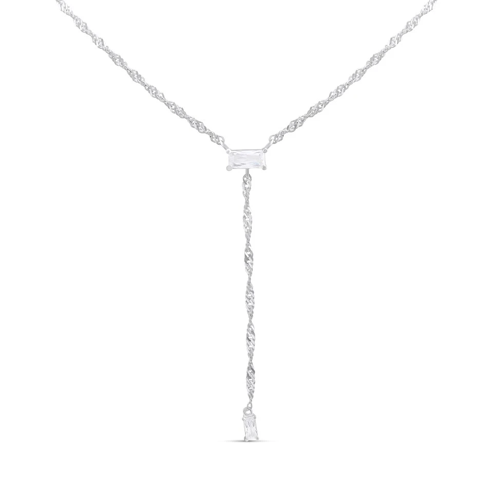 Silver Twist Y Drop Necklace - F9612