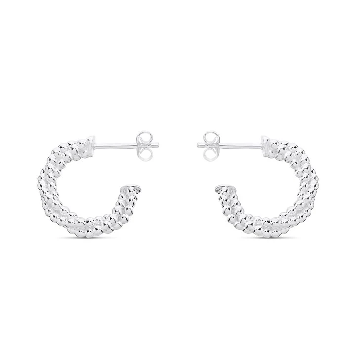 Silver Twisted Bead Hoop Earrings - 15mm - F13142